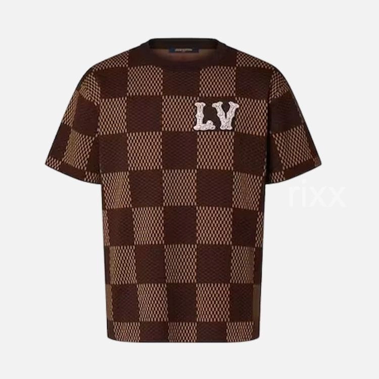 루이비통 숏 슬리브드 코튼 다미에 크리스탈 패치 티셔츠 【매장-100만원대】