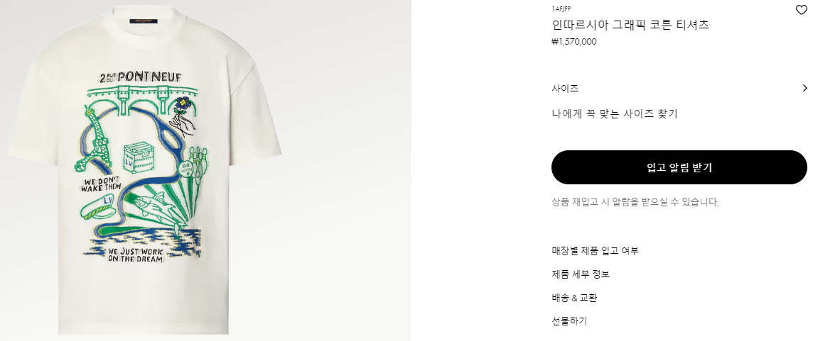 루이비통 인따르시아 그래픽 코튼 티셔츠 【매장-160만원대】