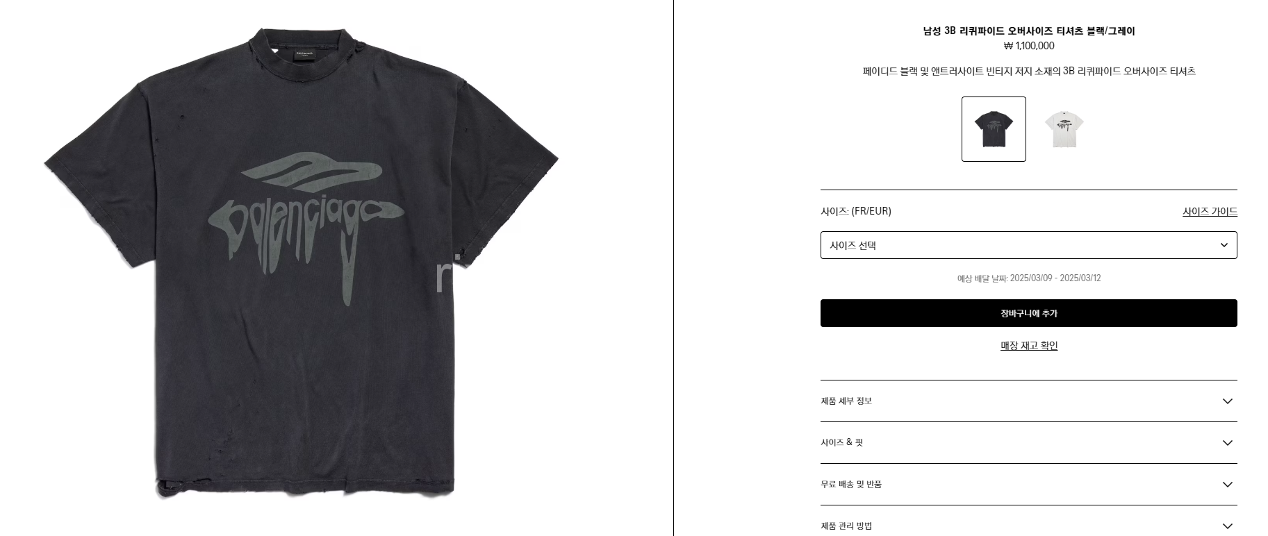 발렌시아가 남성 3B 리퀴파이드 티셔츠 【매장-110만원대】