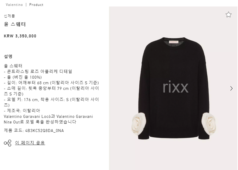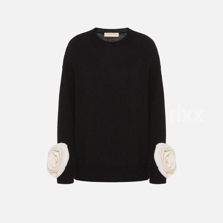 발렌티노 콘트라스팅 로즈 아플리케 울 스웨터 【매장-340만원대】