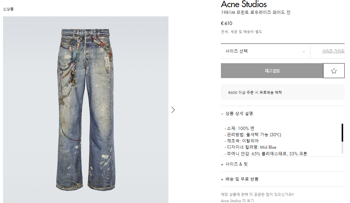 아크네스튜디오 1981M 와이드 팬츠 【매장-100만원대】