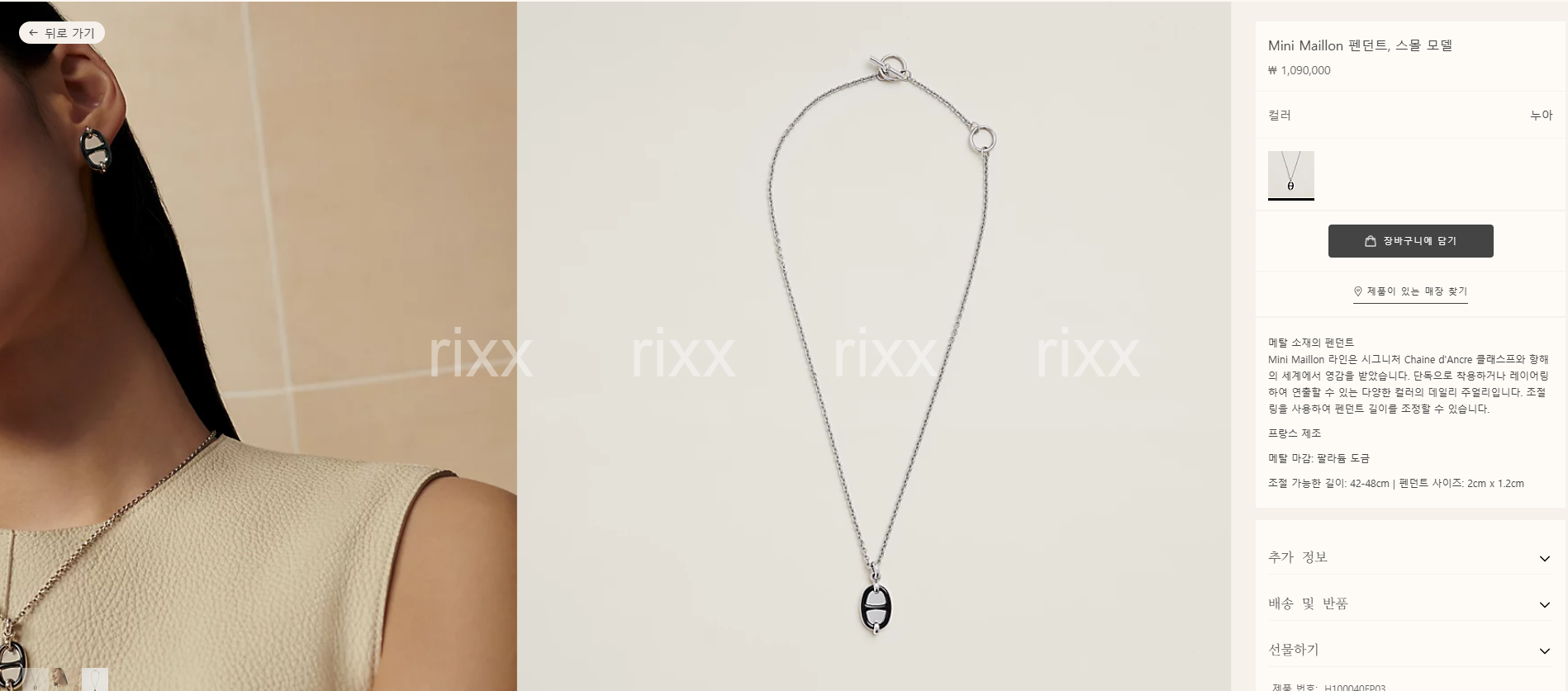 에르메스 미니 마일론 스몰 펜던트 네크리스 【매장-110만원대】