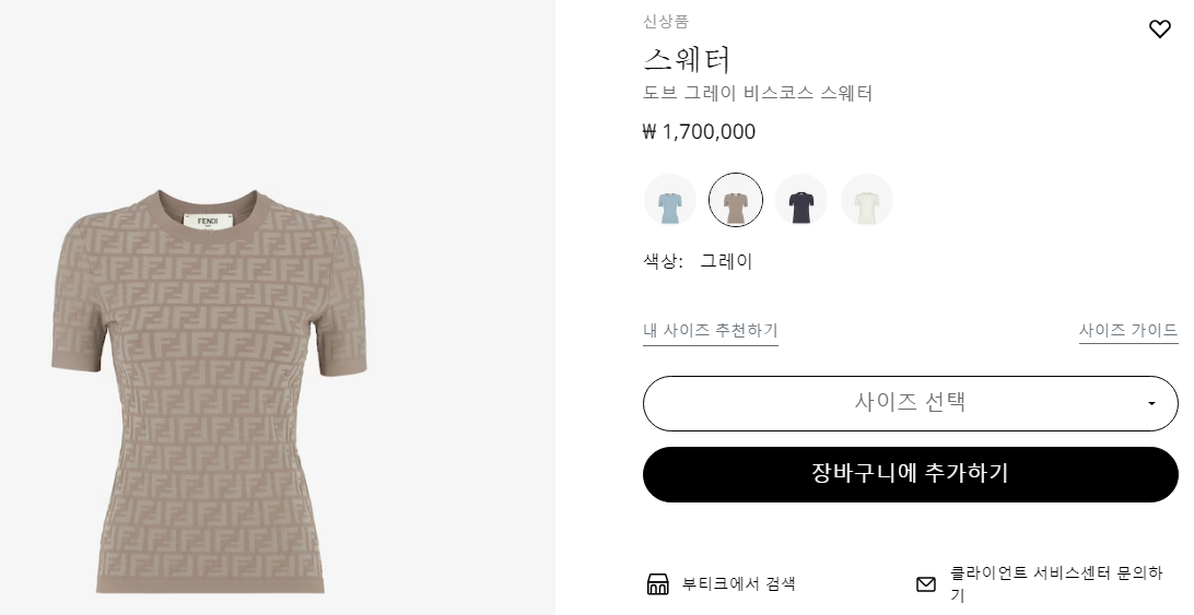 펜디 도브 그레이 비스코스 스웨터 【매장-170만원대】