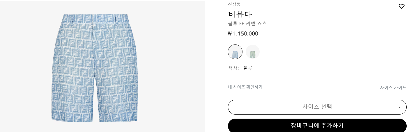 펜디 블루 FF 리넨 버뮤다 쇼츠 【매장-130만원대】