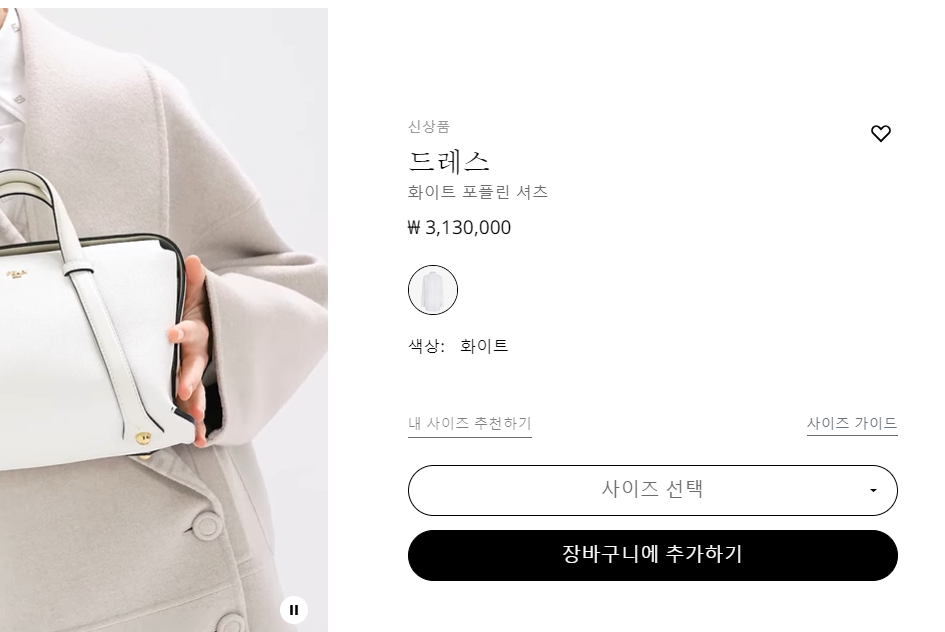 펜디 화이트 포플린 셔츠 드레스 【매장-320만원대】