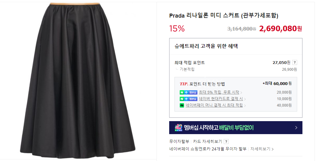 프라다 리나일론 미디 스커트 【매장-320만원대】