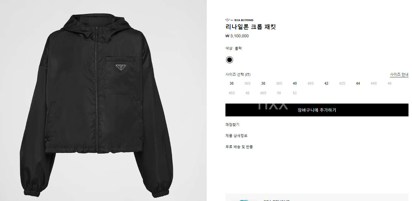 프라다 리나일론 크롭 재킷 【매장-340만원대】